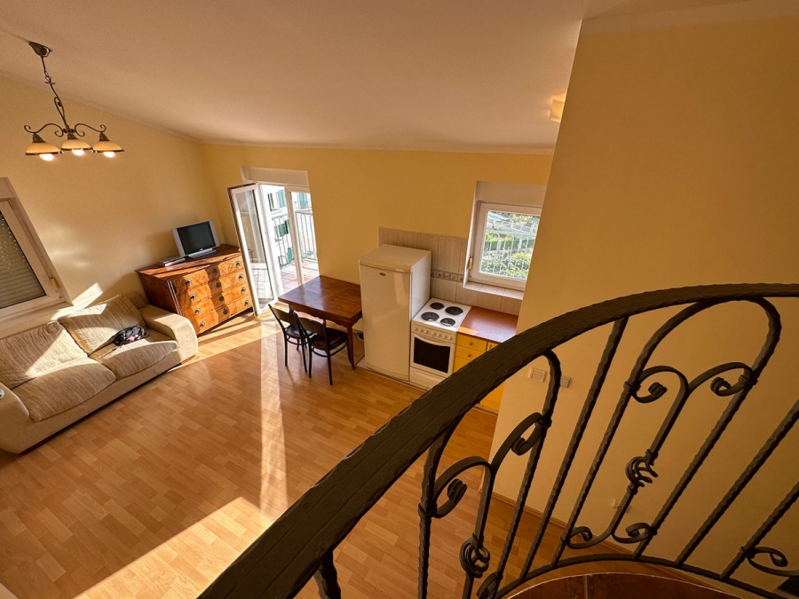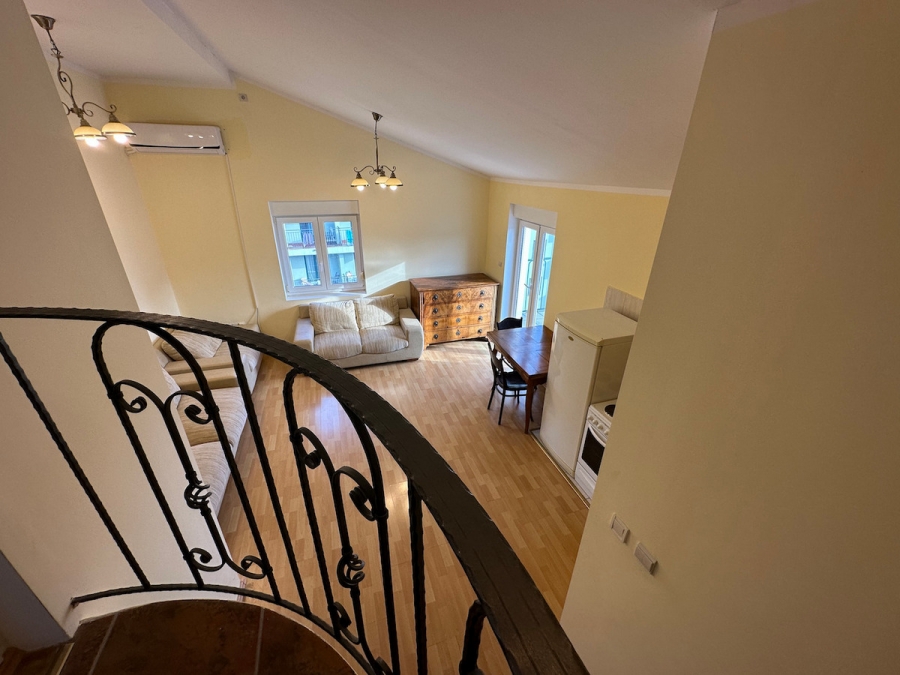 Na prvom nivu stana se nalaze: kupatilo, dnevni boravak i velika terasa sa otvorenim pogledom na grad dok se na galeriji nalaze 2 spavace sobe i terasa sa pogledom prema brdu.