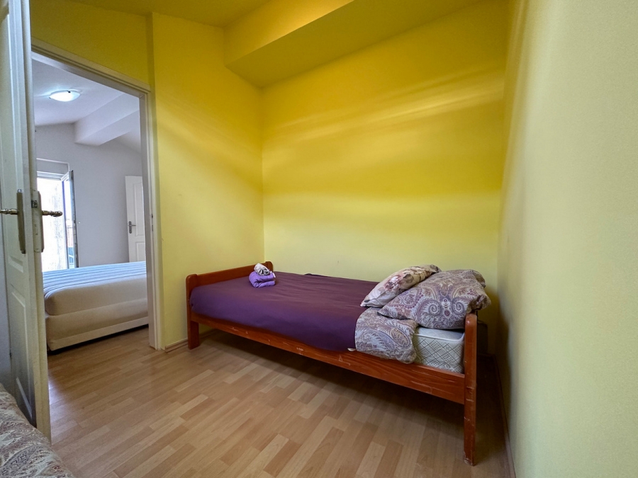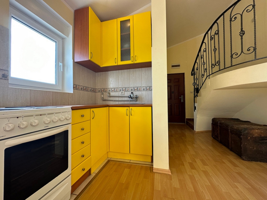 Na prodaju dvosoban stan povrsine 97m2 smjesten na poslednjem, cetvrtom spratu starije stambene zgrade.