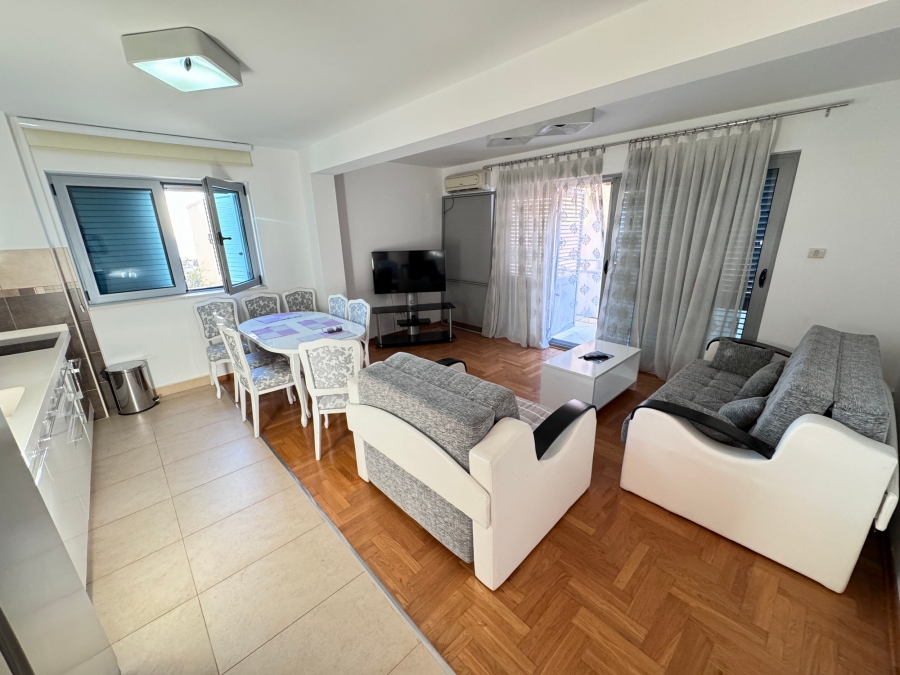 Stan je namjesten i posjeduje 3 spavace sobe, 2 kupatila, dnevni botavak sa kuhinjom i terasu.