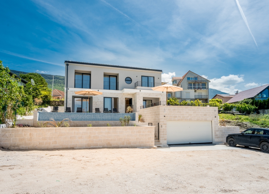 Na prodaju moderna vila sa bazenom i fantasticnim pogledom u naselju Mrcevac, Tivat na samo 5 minuta od aerodroma.