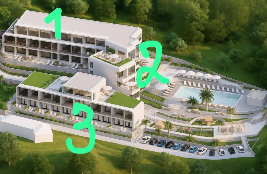 Na prodaju stanovi razlicitih struktura u novom stambenom kompleksu od ukupno 3 lamele na kratkoj udaljenosti od mora u naselju Bonici u Tivtu.