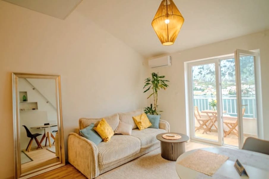 Ovaj stan modernog dizajna, potpuno opremljen i spreman za zivot nalazi se u naselju Muo, nedaleko od kotorskog starog grada i na samo 200m od plaze.